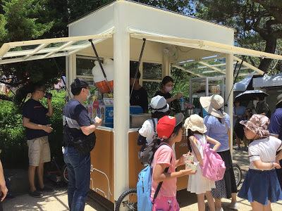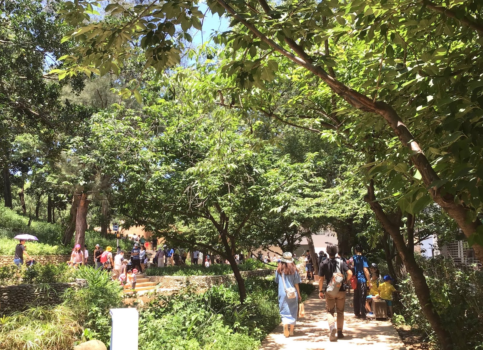 園區內綠意盎然,遊客午間躲在樹蔭下乘涼、野餐,