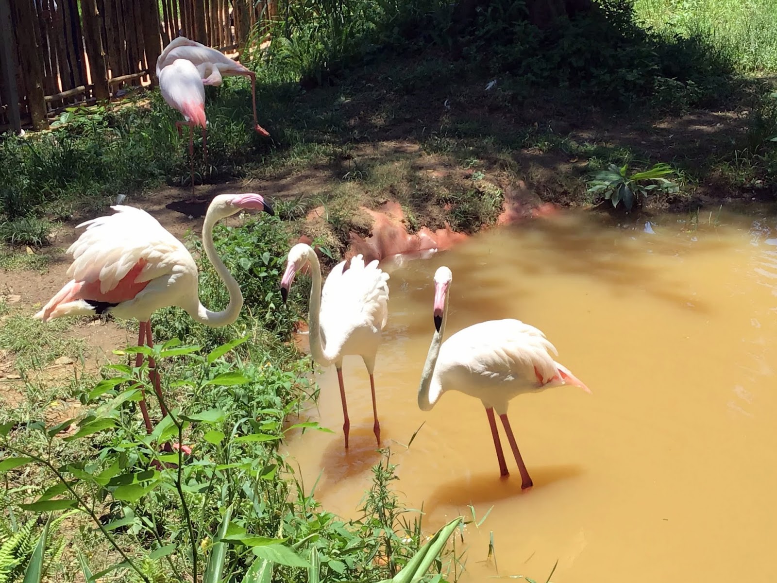 火鶴身材高挑,有著白、淡粉紅色的羽翅,