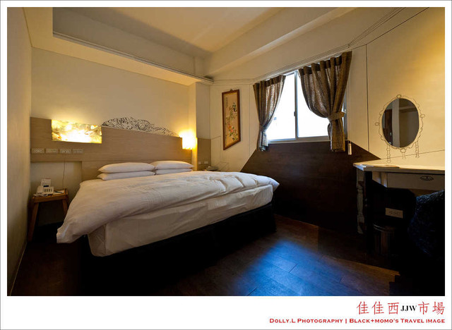 佳佳的客房主要分S/M/L的系列房型,其中的M/L系列房間都是以台南歷史人文打造的主題房,每間都非常有特色與設計感。例如有紅娘布房、神農街屋、眠床臥房、崇文書房、鹿耳窗屋、織女線房、淮山舖房、三郊商房、水巷船房、文曲星房等這些主題房型。黑桃入住的為「眠床臥房」。