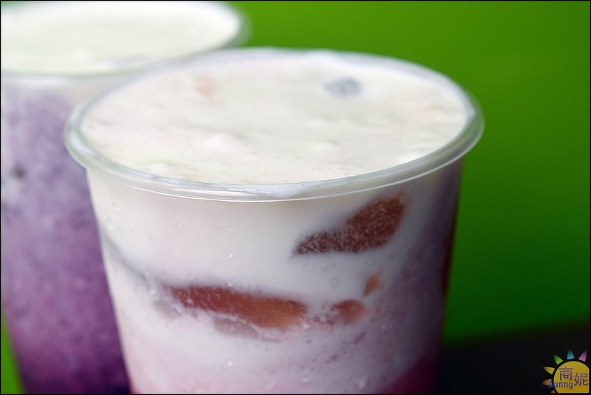 水蜜桃冰沙顏色粉嫩,底下還有水蜜桃果肉丁,用吸管大口吸,可以同時吸到冰沙與水蜜桃果肉、果凍,香甜卻不會甜膩,蠻好喝的。