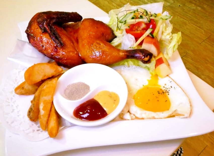 盤內附上蔬食及薯塊,及荷包蛋,一整個超豐富的. 單獨一人吃完這盤還蠻飽足的