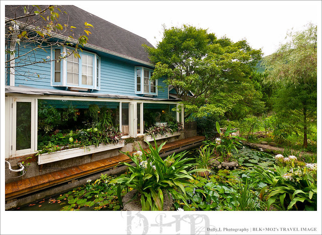 這棟藍色小屋是「山芙蓉」招牌景色,真的很像童話故事中的小屋子。循著一旁的咖啡小徑入園,就會發現裡頭別有洞天!!
