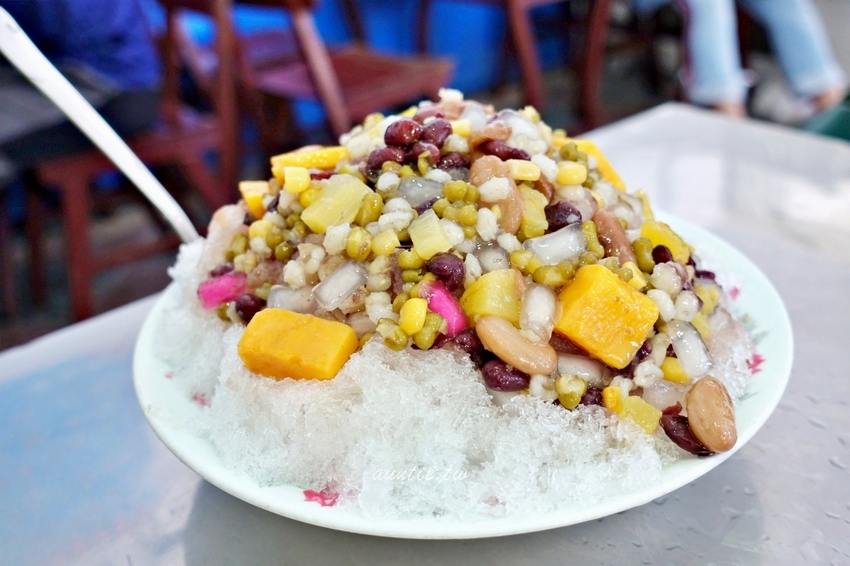 人多的話是直接用紙筆寫下品項點餐,冰品種類也很多,最知名的就是什麼都有的八寶冰,配料有紅豆、花豆、綠豆、鳳梨、麥角、玉米、地瓜、QQ,