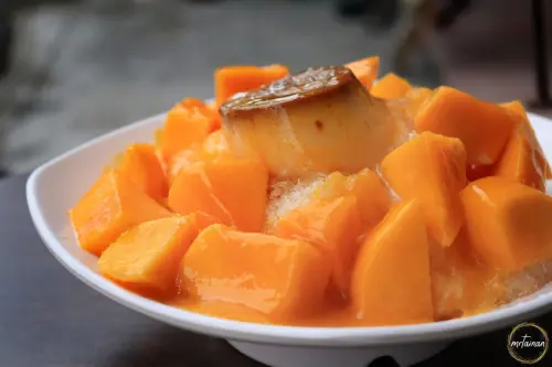 冰品的料裝在碗裡,剉冰請店家另外放。