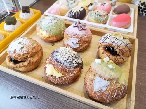 Caigo Shao-彩菓燒的泡芙與一般的泡芙不太一樣,要烤之前應該會在表層灑上些許的糖粉,能讓泡芙表層呈現一股焦糖的感覺,不僅可以增加口感,也可以保持長時間的酥脆感。