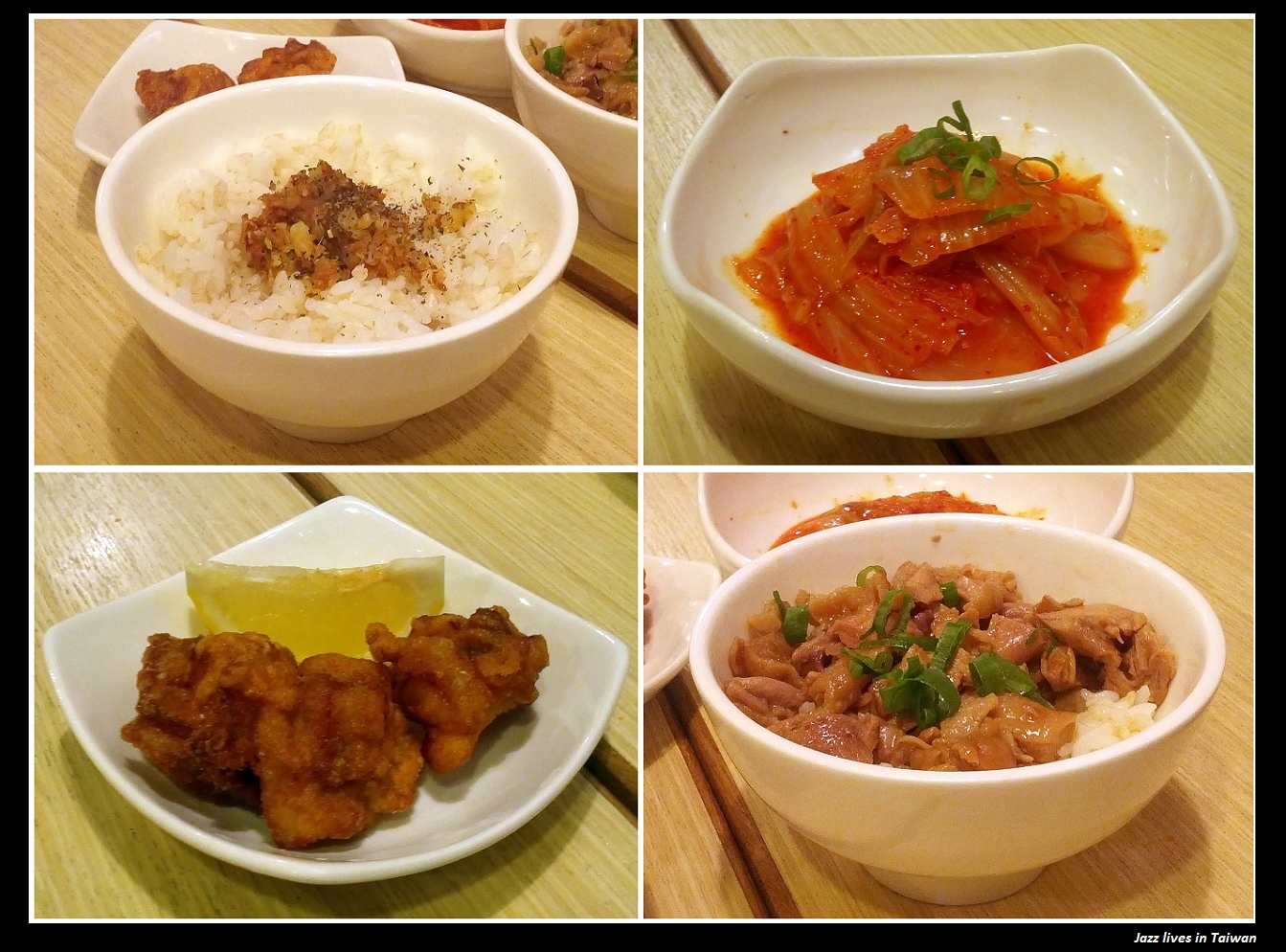 另外還加點了, 拉哩粥(左上, 小$30/大$40), 特製泡菜(右上$40), 特製炸雞(左下, 兩個$40/六個$120), 特製雞飯(右下, 中$50/小$40)