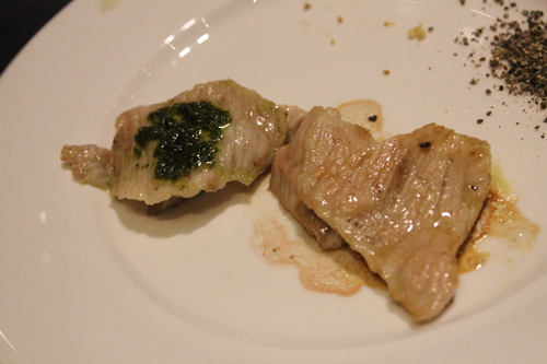 因為我們是雙人份的餐點,另一份選松阪豬,松阪豬脆實的口感,淡淡的奶香味,再加上醬料味,好棒啊!松阪豬同樣也有不同的吃法,真是太幸福囉!