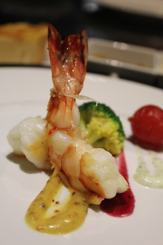 一道大蝦就使用了好幾種不同的醬汁,檸檬奶油、蜂蜜芥末、柚子醬、紅酒蔓越梅,每次上桌,就是一場即興了料理創作,邊看邊期待,也是用餐享受的一部分。大蝦很結實,味道好鮮,真是太棒了!!