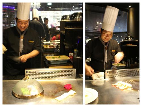 邊吃前菜、喝濃湯的同時,也是主廚登場的時刻,主廚是已經有30年廚藝經驗的何料理長,既然稱為料理長,自然,菜單的規劃與設計,他也是重要的推手,這裡,每個空間都有包廂的感覺,總共有另個煎區,每個主廚在特定的餐點上,偶爾也能發揮個人的創意,頂級的鐵板燒,真的可說是主廚展現廚藝的最佳舞台了。