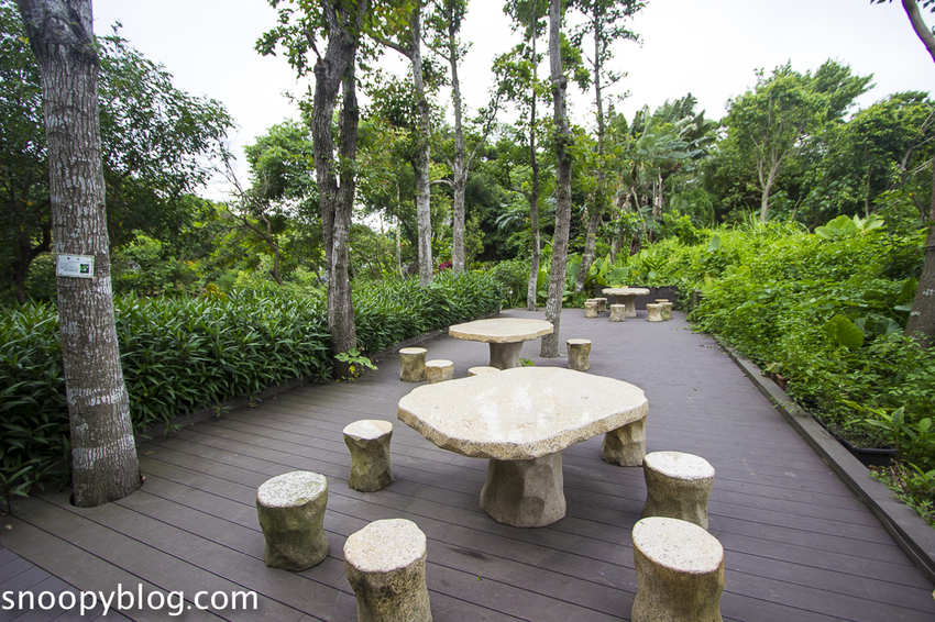 森林間設置了許多的石桌石椅,在此休憩或是野餐也很方便。