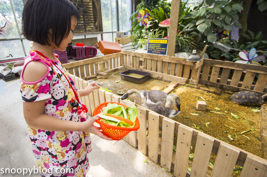 有蔬菜和紅蘿蔔,生態館裡的小動物全部都能餵。