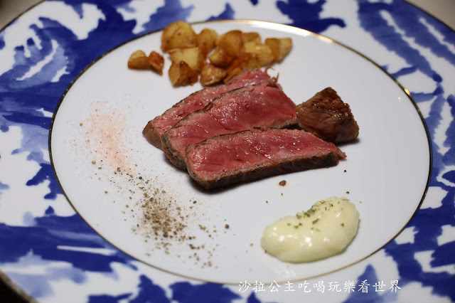 燒過的牛排表面微焦,裡面還是很粉嫩,而且把油脂逼出來吃起來也不油膩