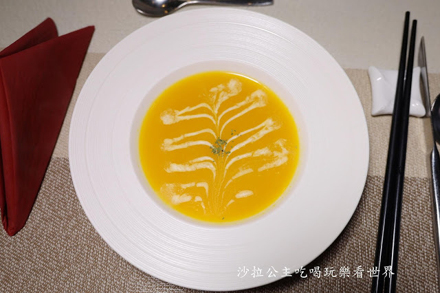 湯品也有拉花,南瓜濃湯香甜順口