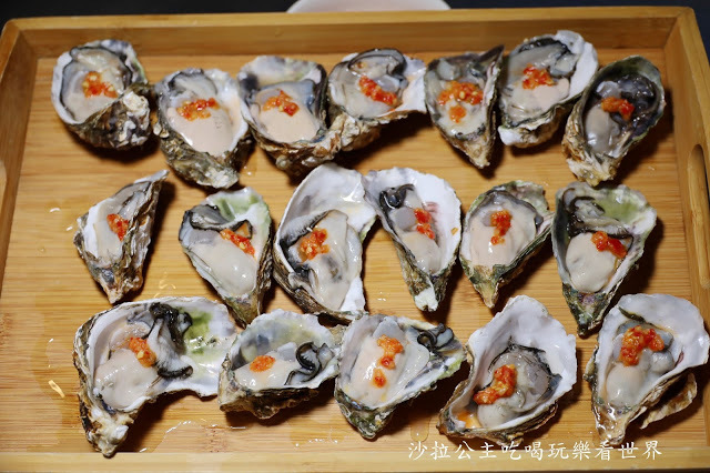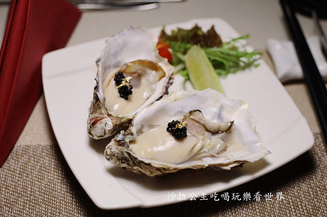 東石生蠔吃起來口感較軟滑,味道鮮美,上面點綴的是主廚特製的湖南辣醬,超讚~~~