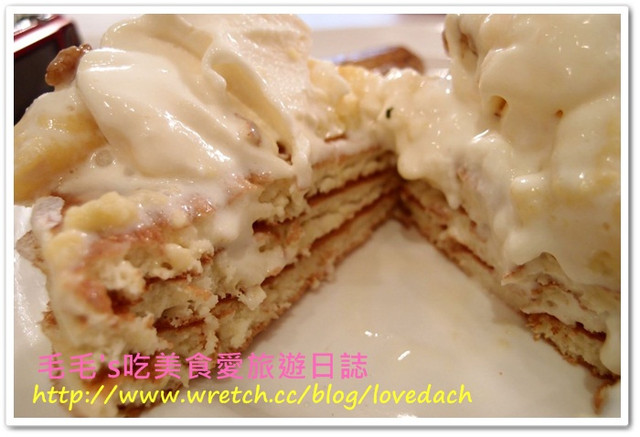 三層煎餅高高疊起,吃起來鹹鹹的,配上甜甜的冰淇淋,鹹鹹甜甜的真好吃!!!!