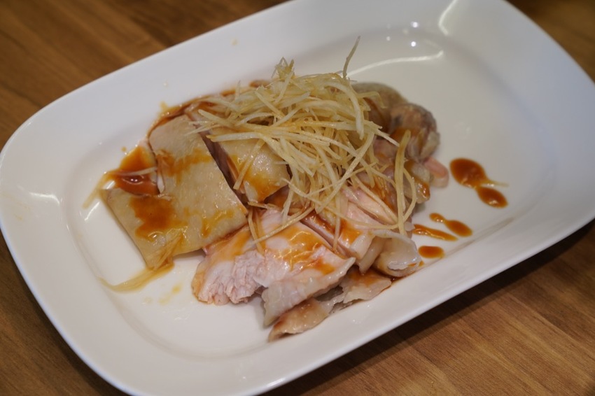 一整塊雞腿肉飽滿多汁卻不乾柴,些許帶皮增添Q彈口感,一點薑絲與古早味雞油膏加持,可以扒上好幾碗飯~