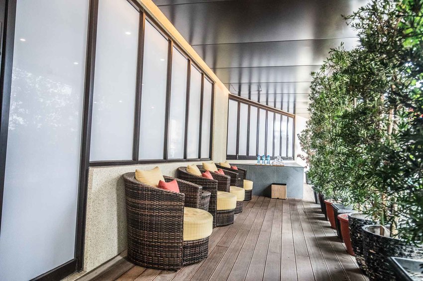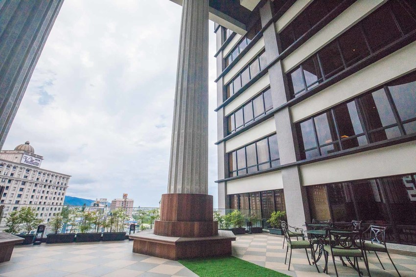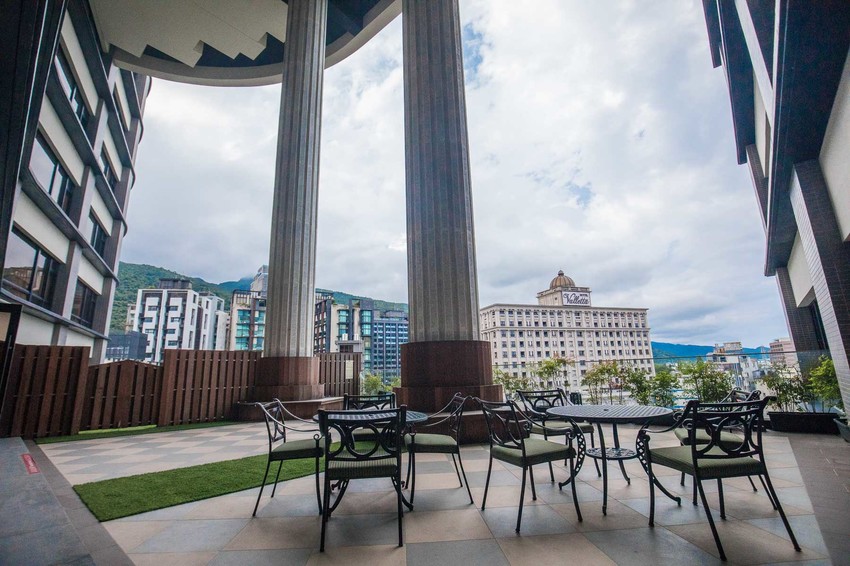 這裡還有一個超挑高的戶外花園空間,同樣也是正對龜山島的景致,來這裡放空發呆超讚的!