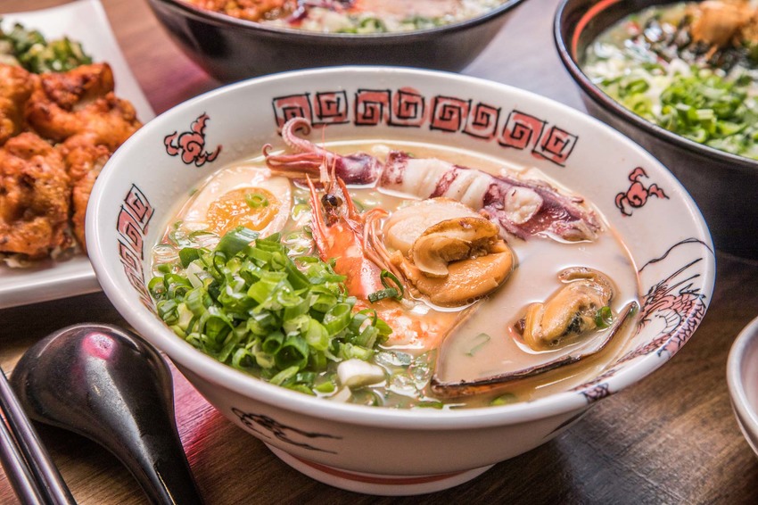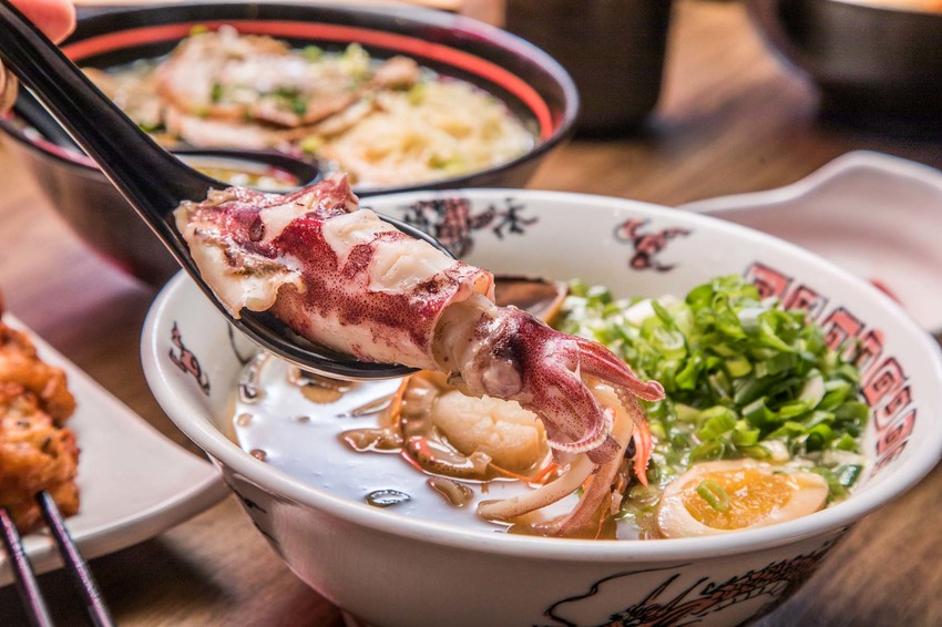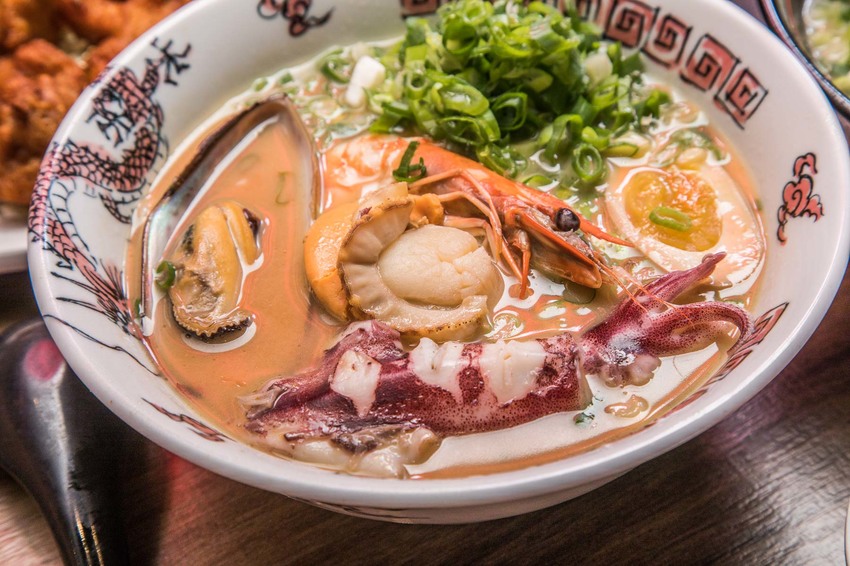 愛吃海鮮的朋友強烈推薦點豚骨綜合海鮮拉麵,集合了在地新鮮海產小卷、帆立貝、大蝦,搭配濃醇的湯底,鮮味十足,光吃海鮮都划算!