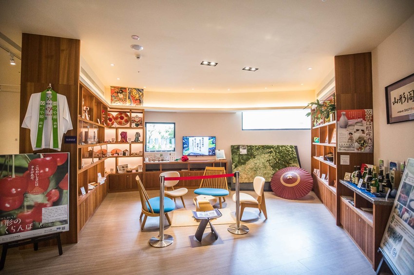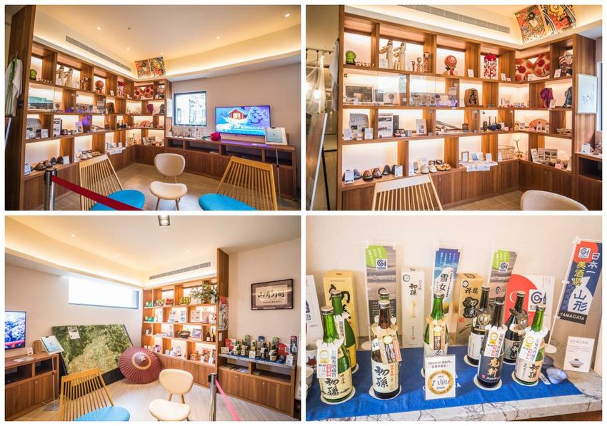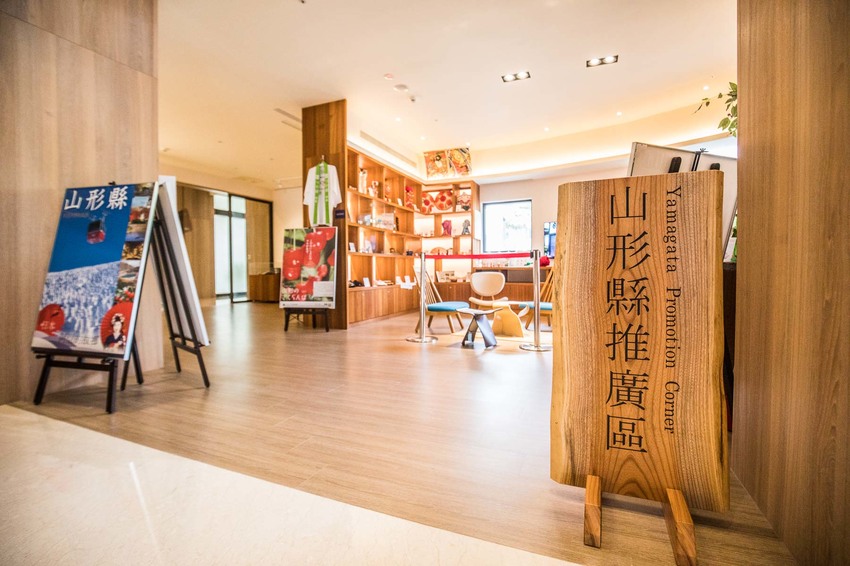 大廳的右側是山形縣的展示中心,日本山形,擁有許多天然壯闊的風景與充滿神祕的山寺,境內連綿著藏王連峰,絕美的白靄樹冰與夕照斜陽,冰雪的山路與氤氳的溫泉,與宜蘭的形象相當類似,所以之前山形縣曾經到訪宜蘭參訪,山形縣知事還留下題字唷