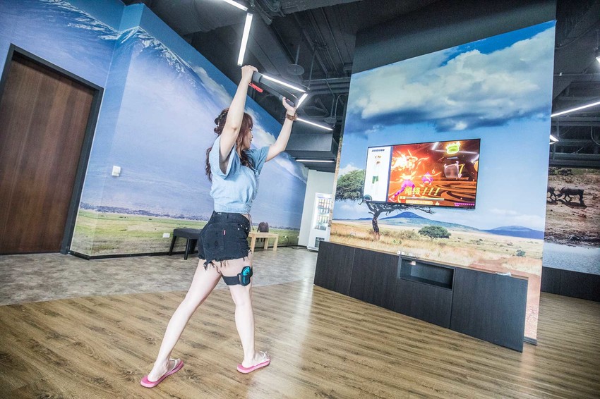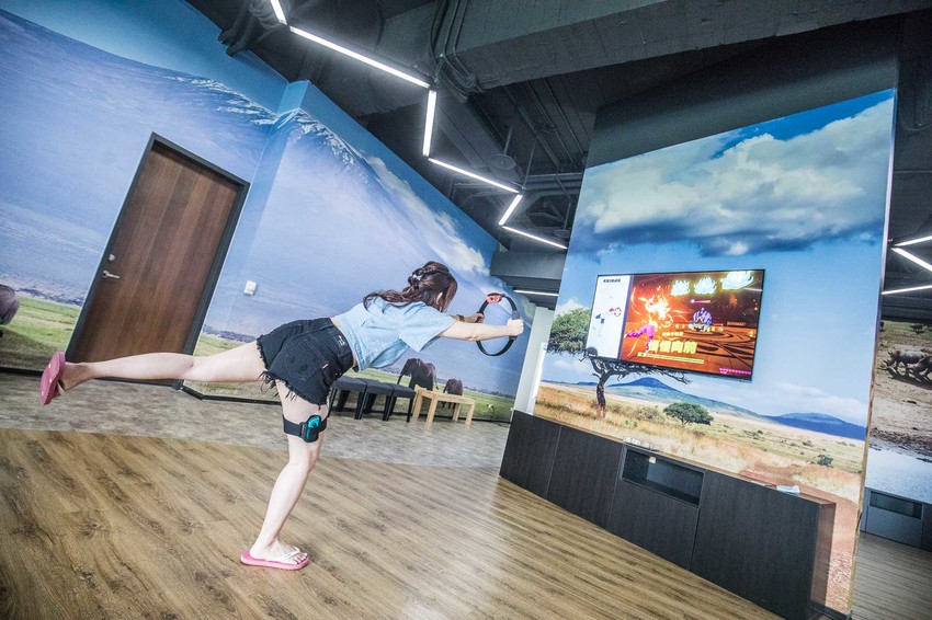 看完男女湯池,接下來我們來到部落樓層,這個樓層主要規劃了健身房、手作DIY教室及沙瓦那電競場,健身房提供多項健身器材,讓旅人們鍛鍊身體放鬆心情,隨時保持最佳狀態