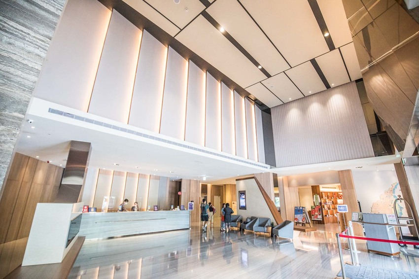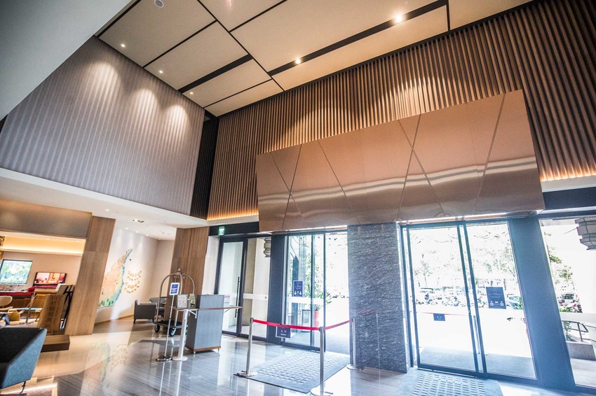 入口處在這裡,上面的玻璃帷幕感覺有點像是天燈的造型,停車有平面式和地下停車場可停放,尊榮服務從下車那一刻就開始,裡面的服務生見車子停妥馬上就出來幫忙拿行李