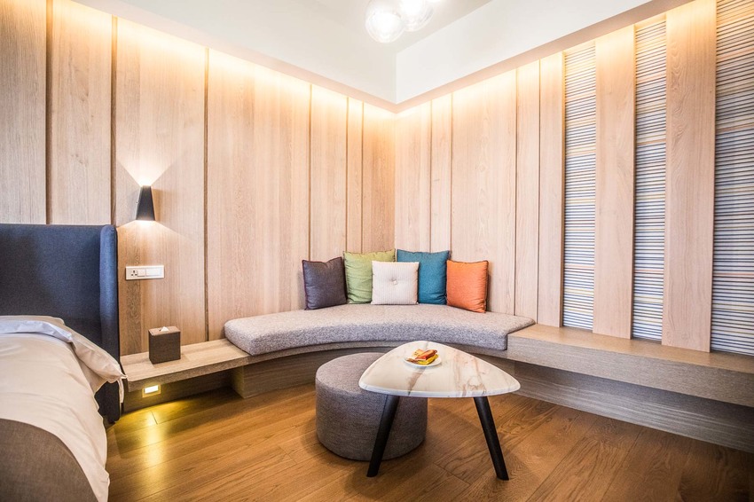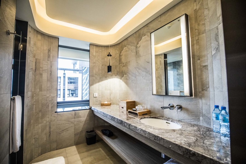 文前有提到山形閣是以山為設計概念,遠古時代人們傍山而居,居住在山洞裡,山形閣取其意象,將浴室空間也打造成一個類似山洞的圓滿造型,有種寧靜安心的感覺
