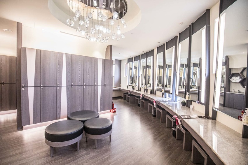 女湯,在設計上十分貼近女生們的需求,各種女生必須備品一應俱全,最大的特色的就是空間中有很多鏡子,設計上也是走閃亮亮的奢華風格,圓弧型的整容間與明亮光線,讓泡完湯的女客人們,可以舒適的梳妝打扮