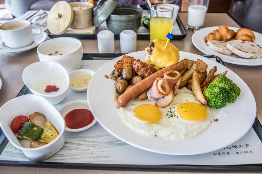 山形閣的早餐也有別於一般飯店自助餐的模式,是以套餐的方式呈現,餐點外觀精緻漂亮,口味上也相當美味細緻,份量也很大,分為日式及西式兩款早餐套餐,可以隨自己喜好來選擇,早餐的主菜會隨著季節與住客人數做調整與變化,讓住兩夜的客人或曾經來過的客人有不同的期待與嚐鮮感