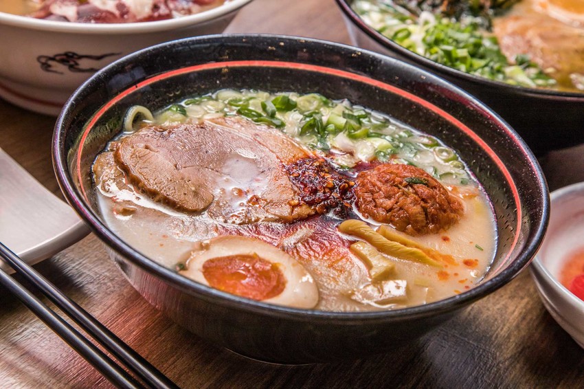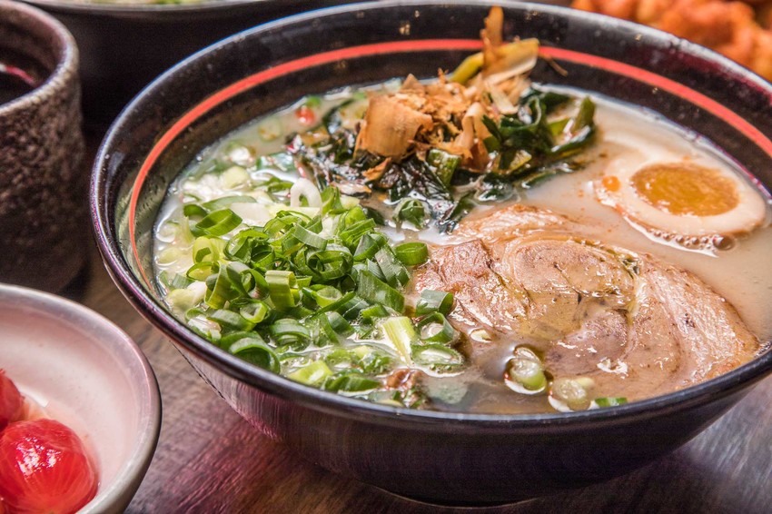 三星蔥韭香拉麵則是加入了宜蘭員山韭菜跟三星蔥,湯底融入了韭菜及三星蔥的甜,賦予濃郁的豚骨湯底更有層次的味覺口感,吃上一口就停不下來