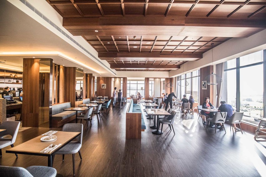 米澤廳用餐環境十分典雅舒適,超過270度的落地景觀窗可以飽覽礁溪街景及蘭陽平原的美景,早餐在這絕美景觀下用餐,真的超享受的啦!