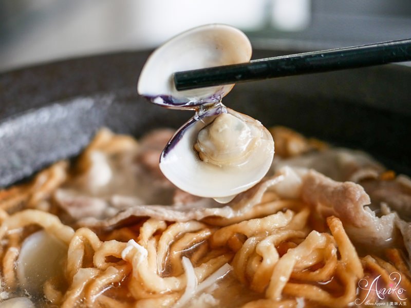 配料有豬肉片、蛤蜊、青菜、蛋和旗魚黑輪,一碗下肚飽足感不錯! 😎