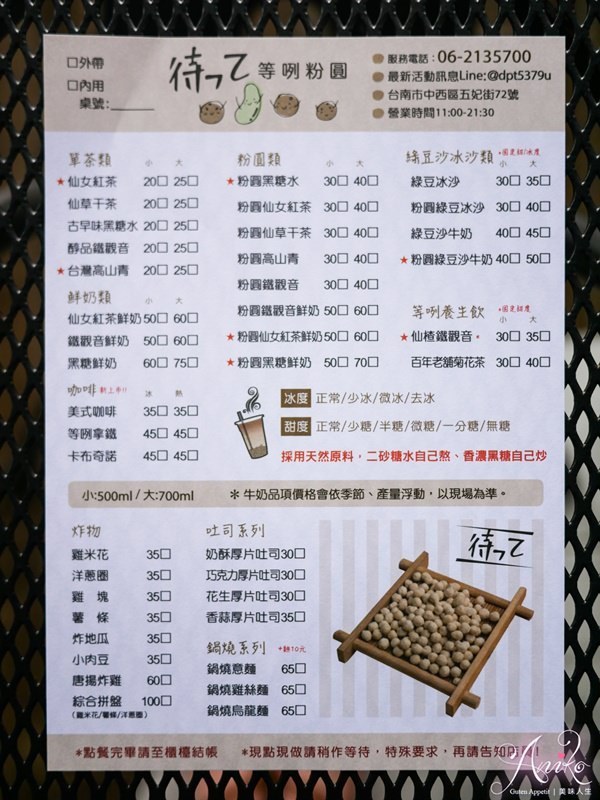 等咧粉圓菜單menu