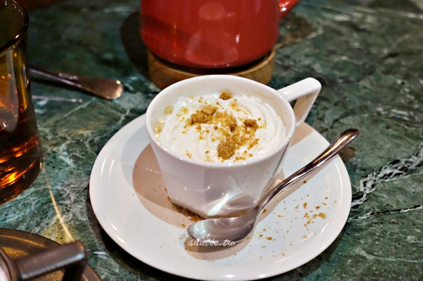 杏仁酒康寶藍味道非常濃,使用杏仁酒跟濃縮咖啡做成的,建議跟上頭的奶油一起吃,口味非常非常濃厚,濃濃杏仁酒味道,喝起來蠻苦的,真的是大人口味濃縮咖啡,很有特色,不過本人是咖啡口味幼幼班,這杏仁酒康寶藍太濃烈了無法承受。