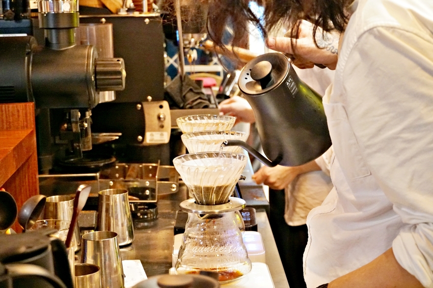 吧台的位子很熱門,因為可以近距離看金萬做飲料、沖咖啡。