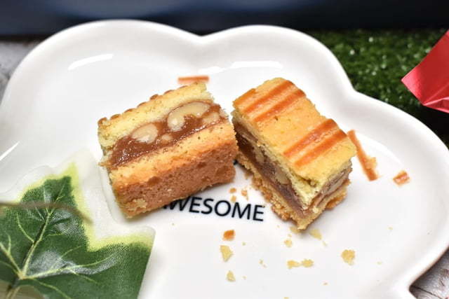 ●安地斯焦糖酥 Andes Caramel Cake,帶著虎皮斑紋的外表,內層夾心是融合台灣龍眼蜜&黑糖,經過五道工法特製而成的焦糖,與美國核桃結合的法式甜品。