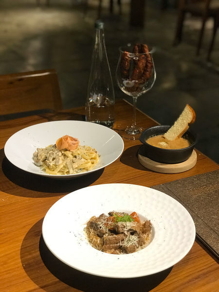 義大利麵有:新產品藍乳酪鮭魚寬麵、主廚推薦的口味也有