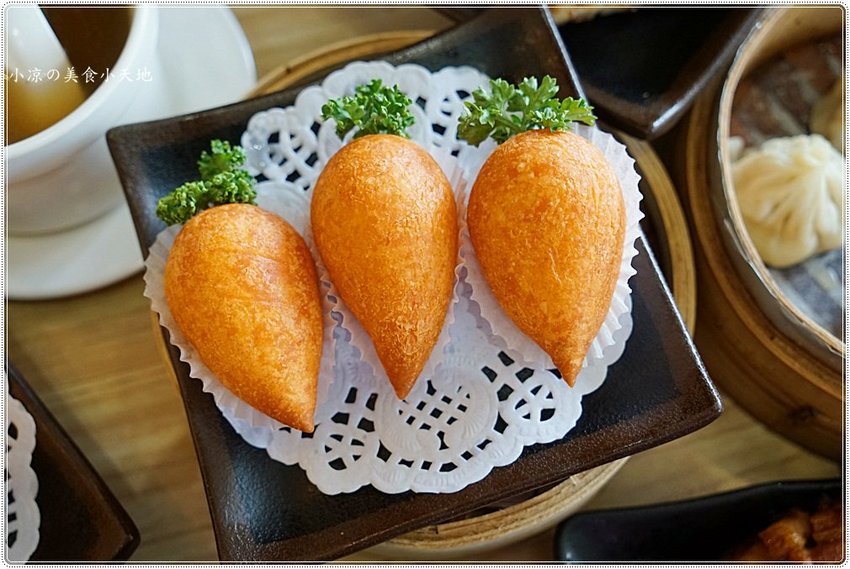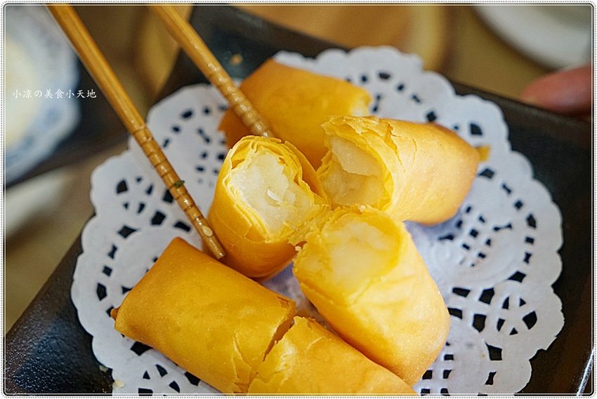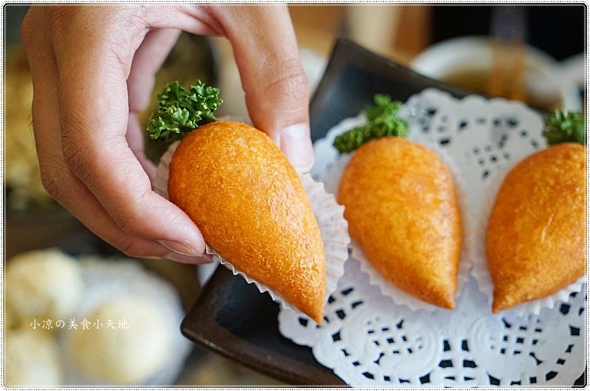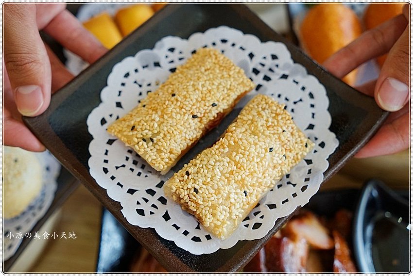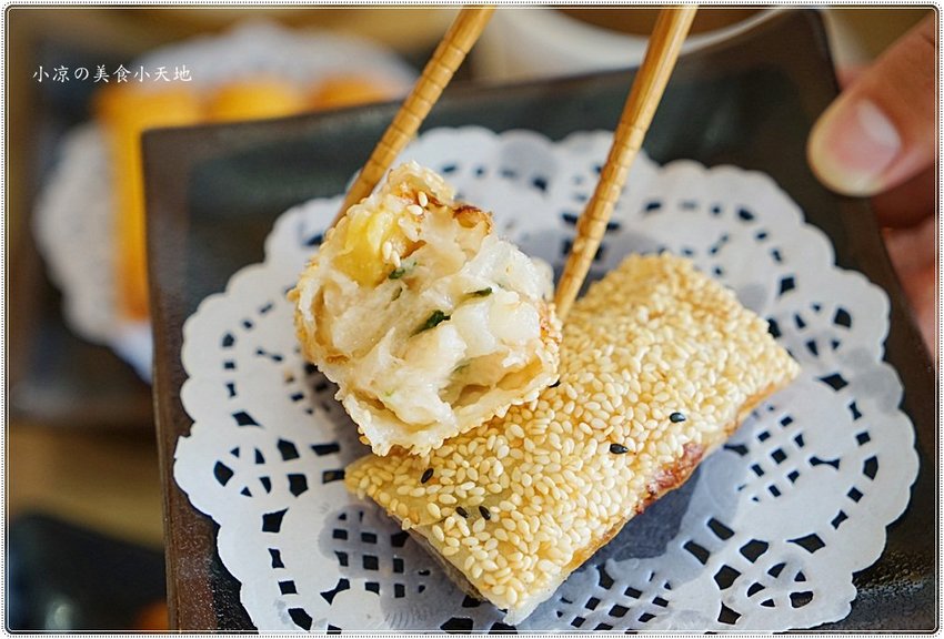 外表吃起來有點像炸麻糬的軟Q,相當具咀嚼口感,搭上內餡的鹹香、相當夠味兒,這一道點心小凉很推薦~