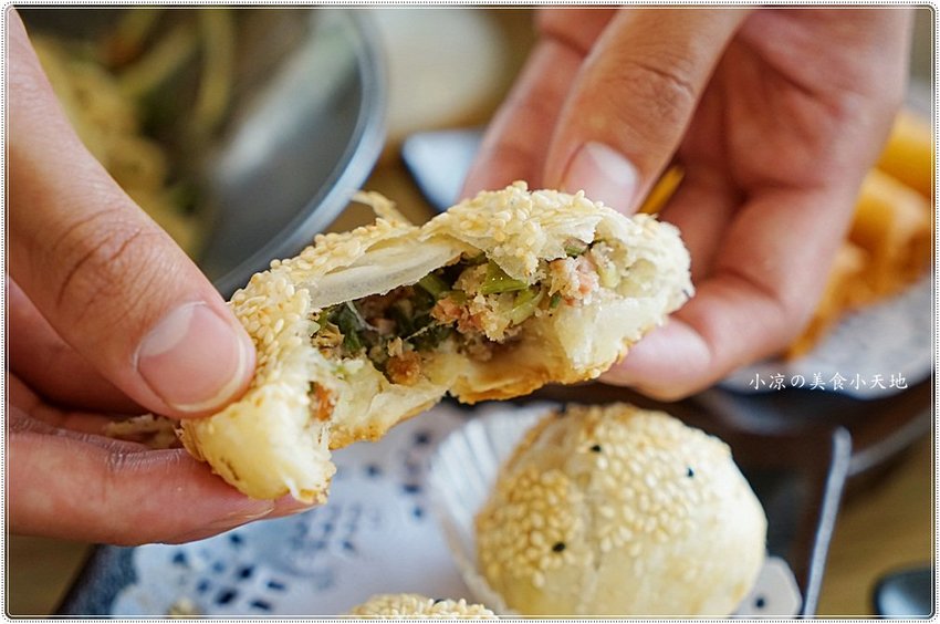 餅皮的酥香與內餡的鹹香完美的結合,會讓人吃到欲罷不能。尤其內餡包著後腿豬肉以及青蔥,吃起來香味四溢,唇齒留香,就連掉落於手中的芝麻都不忍放過。