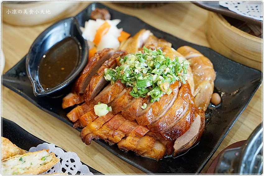 燒鴨、微酥的鴨皮牽動了鴨胸肉的柔嫩,不柴且還能吃到甜味,小凉個人覺得不用沾醬就很好吃了。叉燒肉質鮮香,口感帶了點紮實,甜味中透著醬香。油雞、嫩滑的雞皮加上鮮嫩的雞肉,加上蔥醬一起吃更有味!