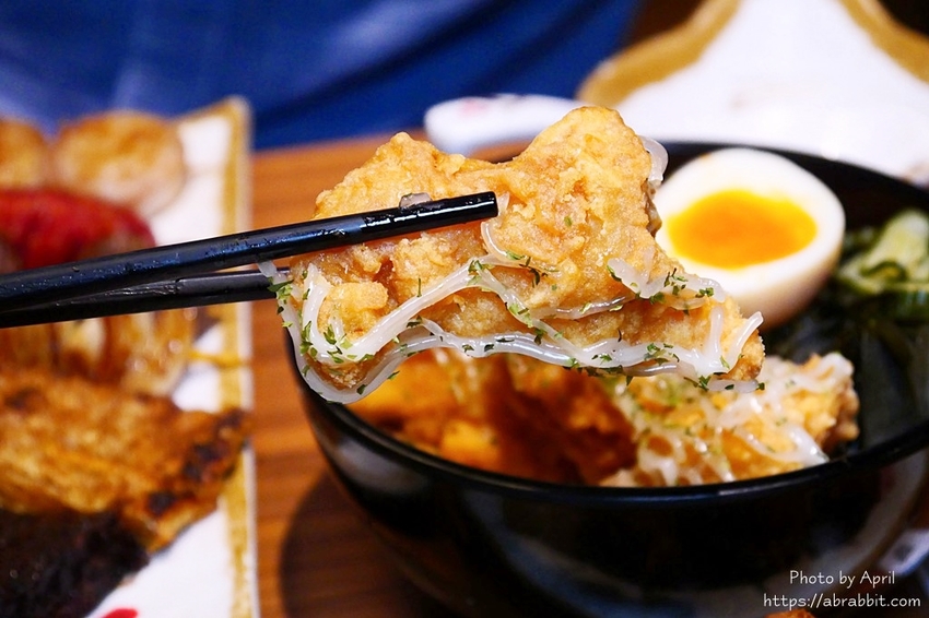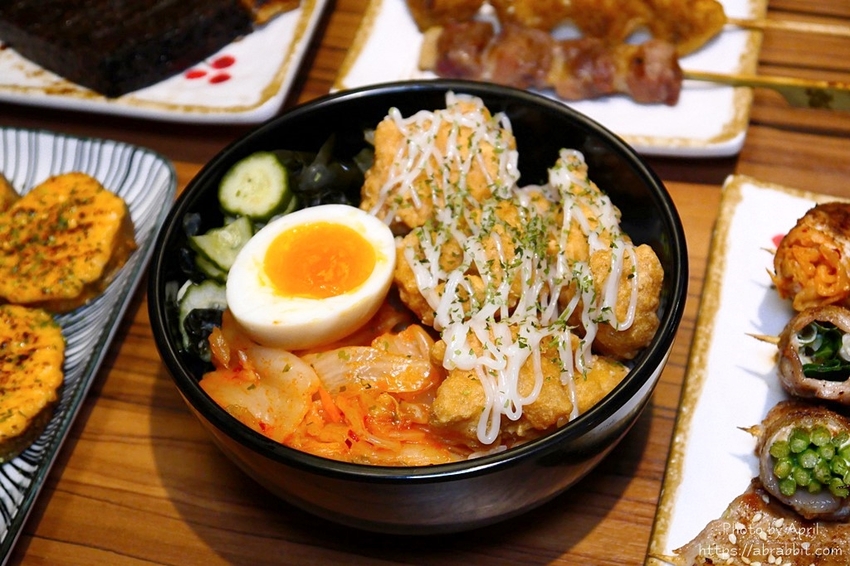 丼飯也是店家這邊很推薦的,平均一張百元鈔票左右的價錢就能吃到美味的丼飯,這天吃的是黃金唐揚雞,雞塊非常大塊,給得好大器啊!上頭還淋美乃滋,丼飯裡面還有好吃的泡菜、半顆糖心蛋和小黃瓜等。份量就是吃完會飽的那種!所以來神串串燒這邊,想要吃巧也可以,想要吃飽也可以!
