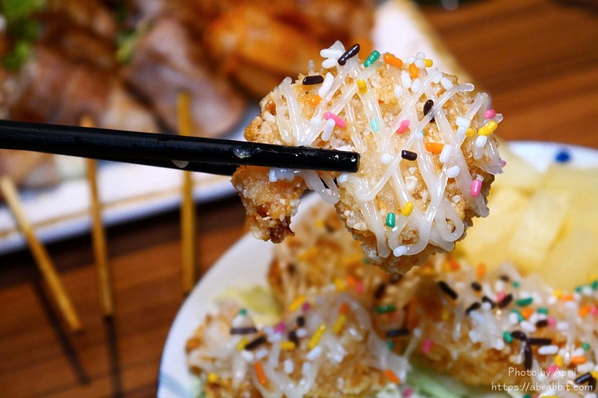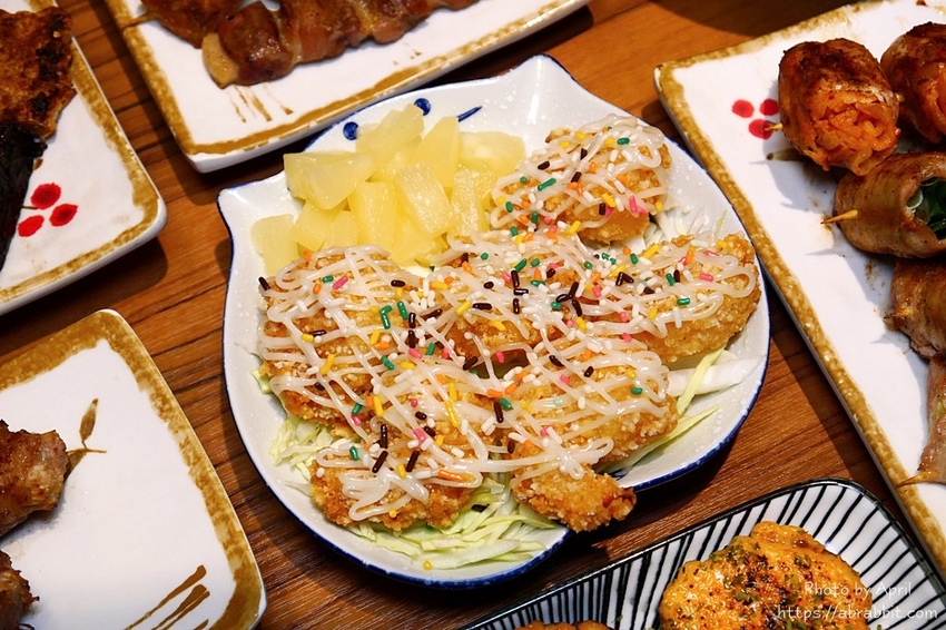 鳳梨蝦球,以前覺得這道菜都是在喜宴上面才容易看得到,不過現在在串燒店也吃得到啦!這一定要撒上彩色的糖粒,外皮薄薄,裡頭的蝦子也非常Q彈,配上鳳梨還蠻解膩的哈哈哈哈。