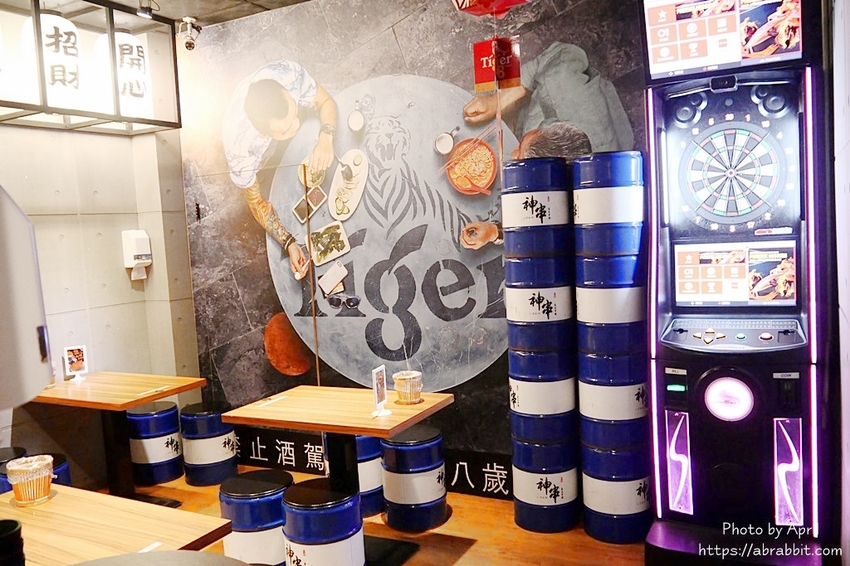 其實座位區不只有剛剛前面看到的唷,再走進去一些還有位子呢!一旁還有超人氣的射飛鏢機,邊吃串燒還能邊玩射飛鏢。