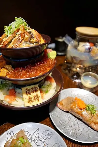 食指大丼主打浮誇的三層丼飯,還有乾冰製造的效果,讓人眼睛為之一亮!
