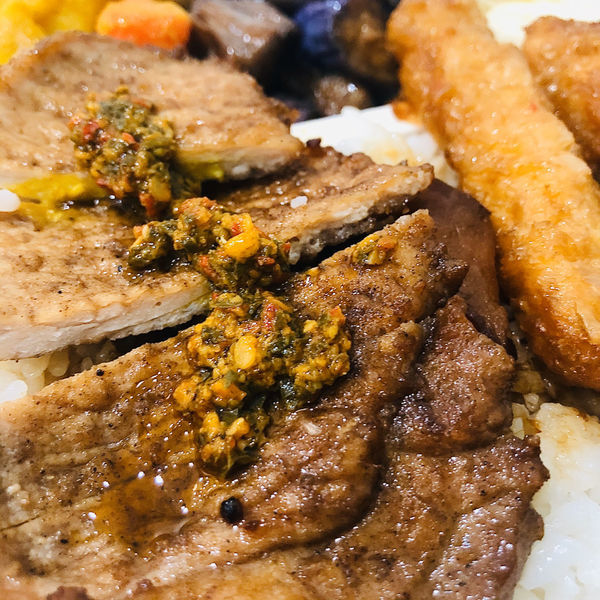 搭配豬肉排,大辣有點辣,但是羅勒風味很香,帶點蒜味,非常好吃。雖然有大蒜,但不會殘留口中太久,有點辣義大利面青醬風味。