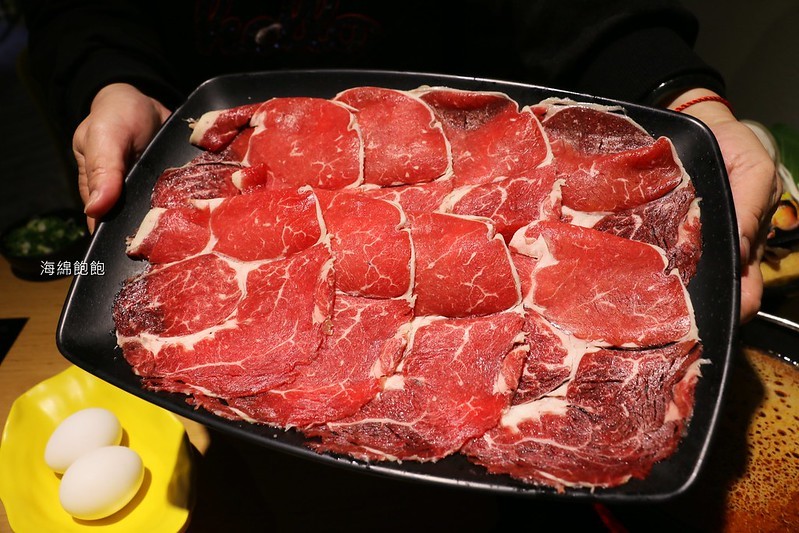 沙朗牛肉涮麻辣湯很對味,不用沾醬也很香