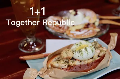 "1+1 Together Republic",既不是餐廳也不是酒吧,亦非複合式咖啡店,只是一般的咖啡廳,店內的餐點,都是店家精心製作,非使用調理包