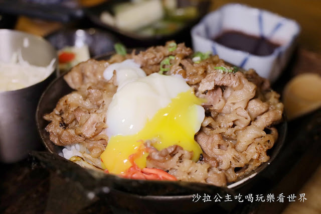 今天把牛肉吃掉一些後把溫泉蛋放進碗裡,劃破蛋黃跟飯、肉攪拌一起,蛋香並不會搶了其他食材的風采,反而讓層次更加豐富