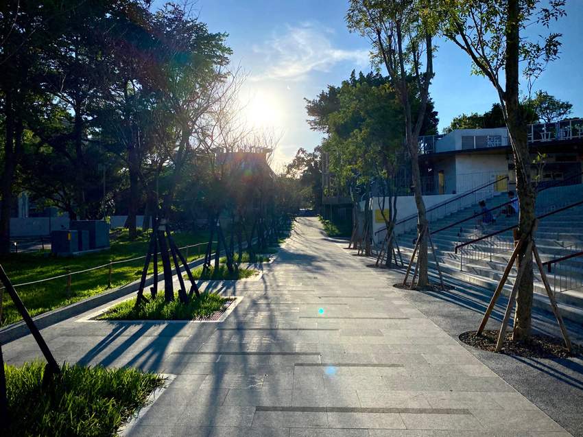 天氣正好的時候,金黃色夕陽光輝灑落在人行步道上,宛如一條屬於新竹最美麗的金色大道,夢幻美景讓人沉浸其中,享受如童話故事般的體驗 。