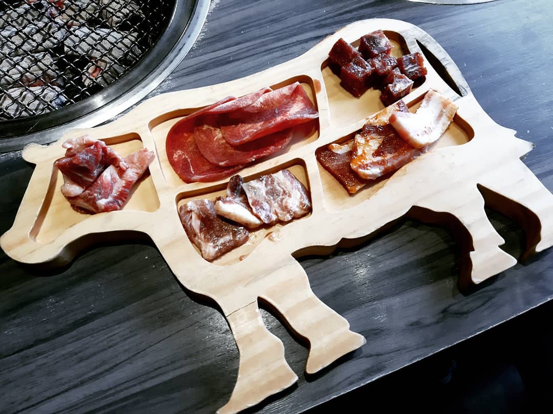 點完餐後,店員會問是否要先上基本盤,這天給我們的是隨機的三種牛肉(照片上方)以及兩種豬肉(照片下方)。