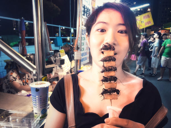 第三間,"蟀到沒朋友"你沒看錯就是炸蟋蟀,來夜市一定要吃新奇美味的食物,這一個一定不能錯過。在朋友的強烈推薦下,鼓起勇氣嚐鮮了一串炸蟋蟀!